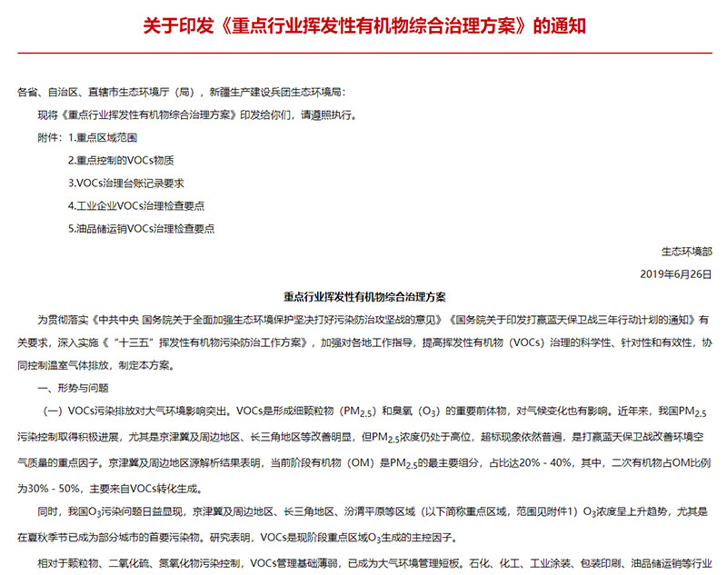 江蘇:強化VOCs治理,VOCs排放總量削減20%以上